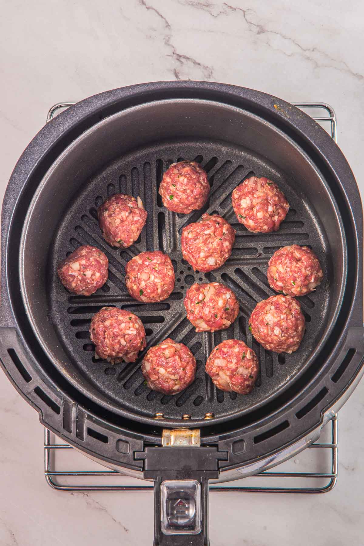 - Place the meatballs in the basket, leaving space between them for even cooking. (cook in batches)