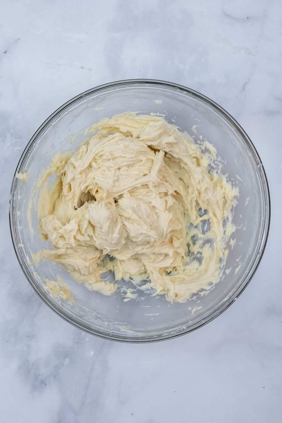 Step 1: In a mixing bowl, add the soften cream cheese, sugars and vanilla extract and beat with an electric hand mixer until mixed together well and smooth.