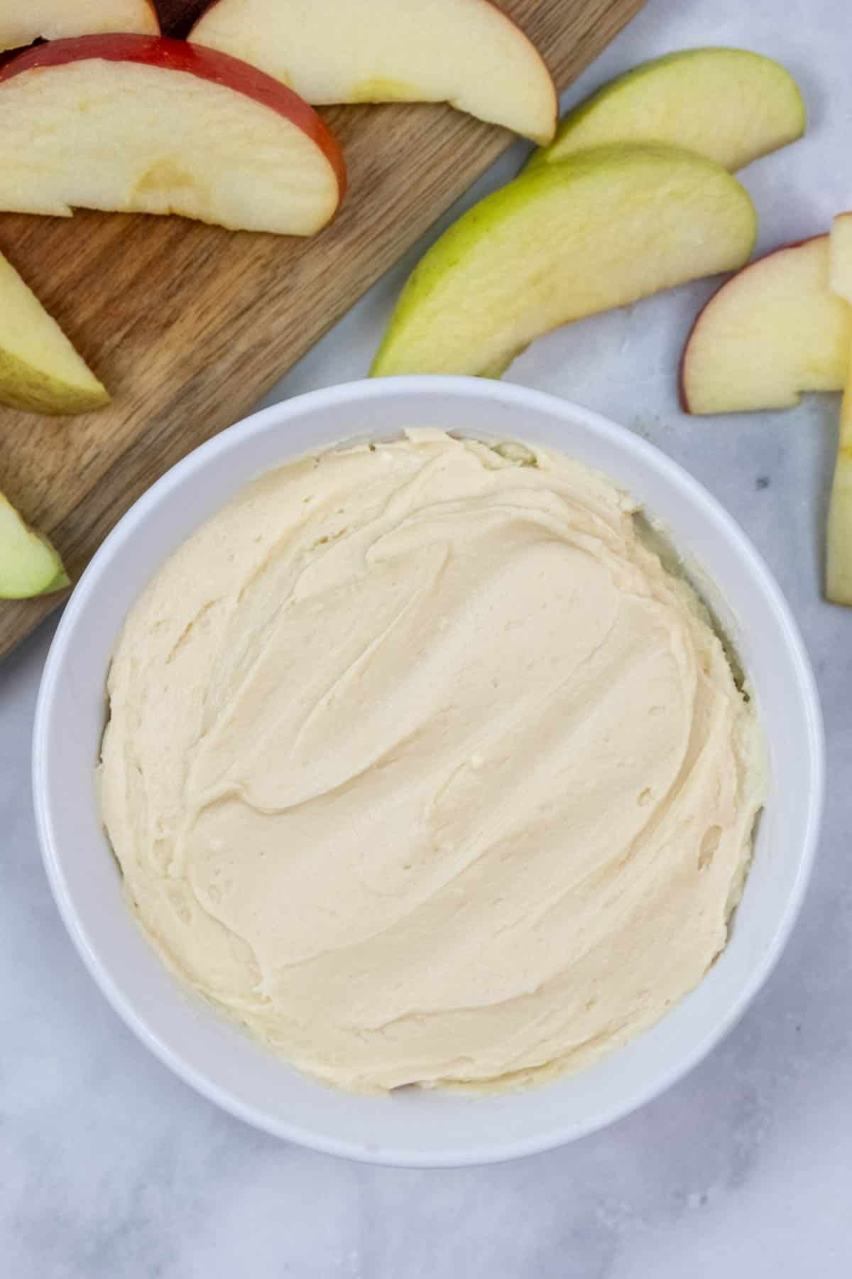 When I first made this dip years ago, my kids ate it so quick that my husband never got a chance to even try it. So needless to say, it has become a fall favorite treat that I make often as well as this pumpkin cheesecake dip. Our favorite apples to dip in it are honey crisp and tart granny smith apples but use any different kinds of apples you like.