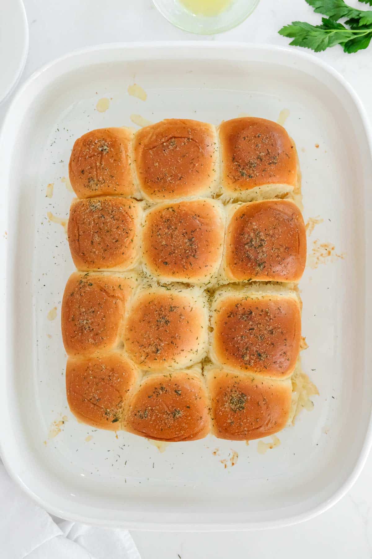 - Butter: to brush on top for added flavor and to get that golden brown. Sprinkle with reserved ranch dressing or even garlic powder or garlic salt.
