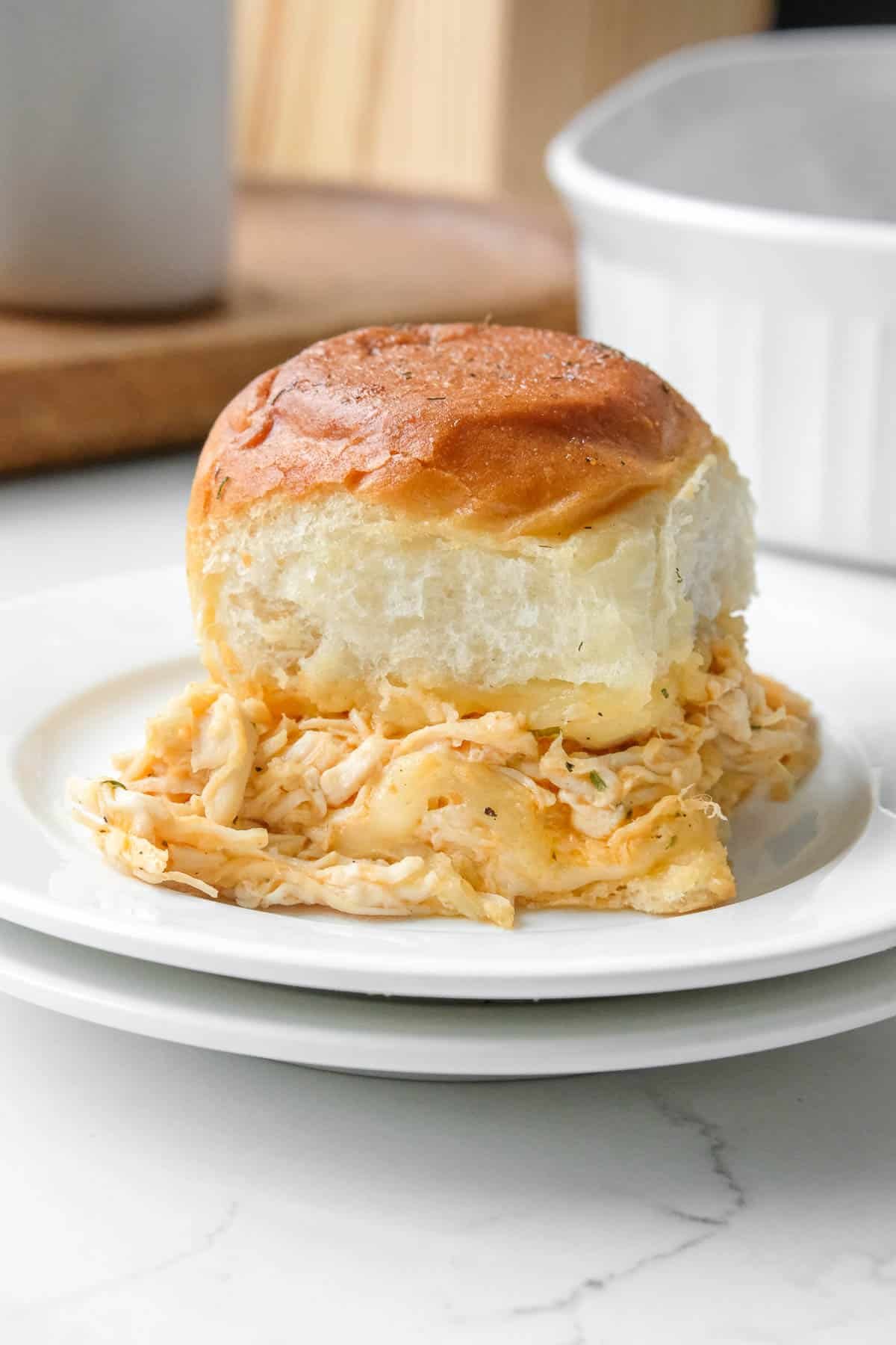 - Hawaiian Roll Slider – I love King’s Hawaiian rolls brand but you can use any small dinner rolls too. Don’t separate the rolls before slicing.