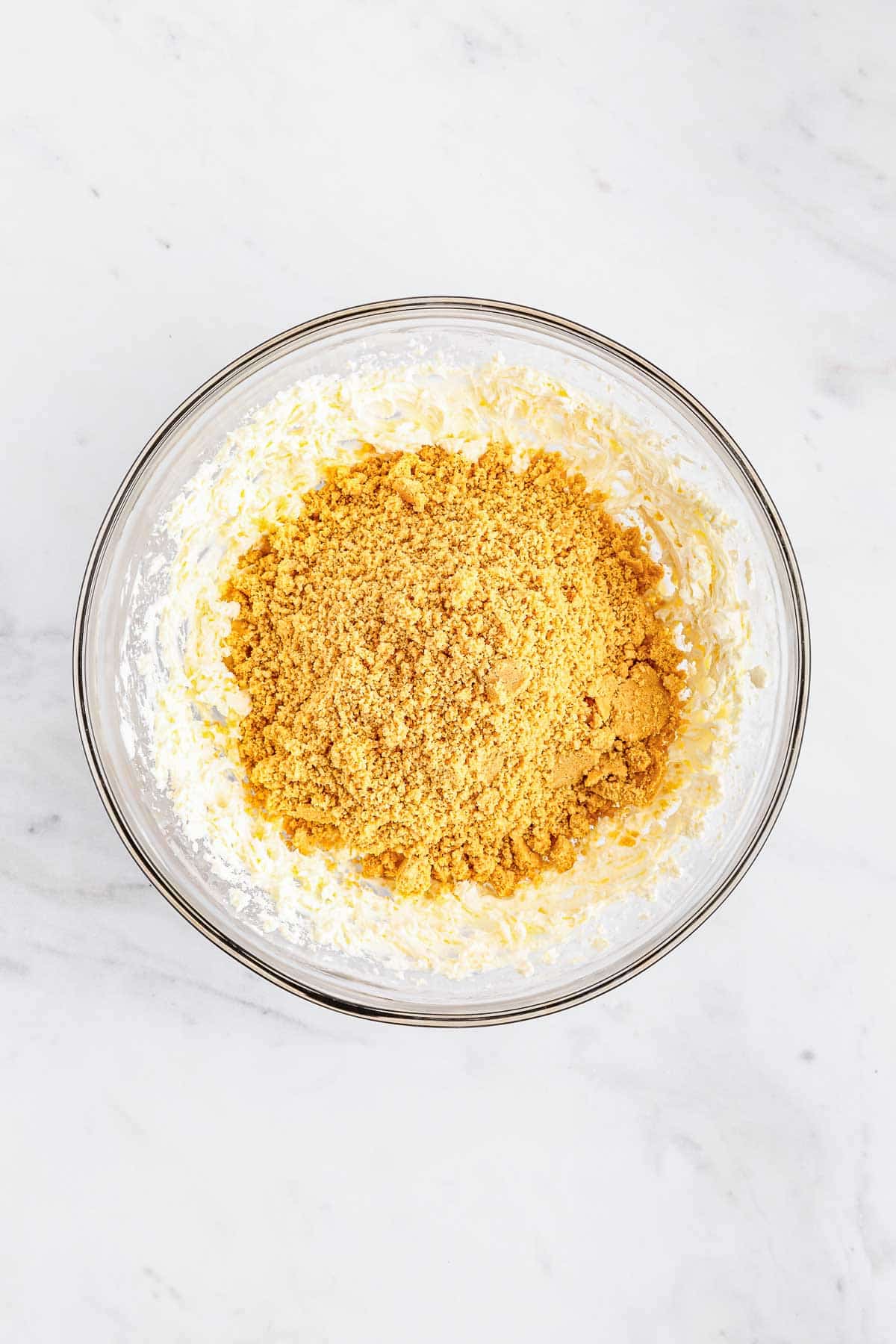 Step 4 – Add the cookie crumbs and ¼ cup of sprinkles to the cream cheese and mix gently.