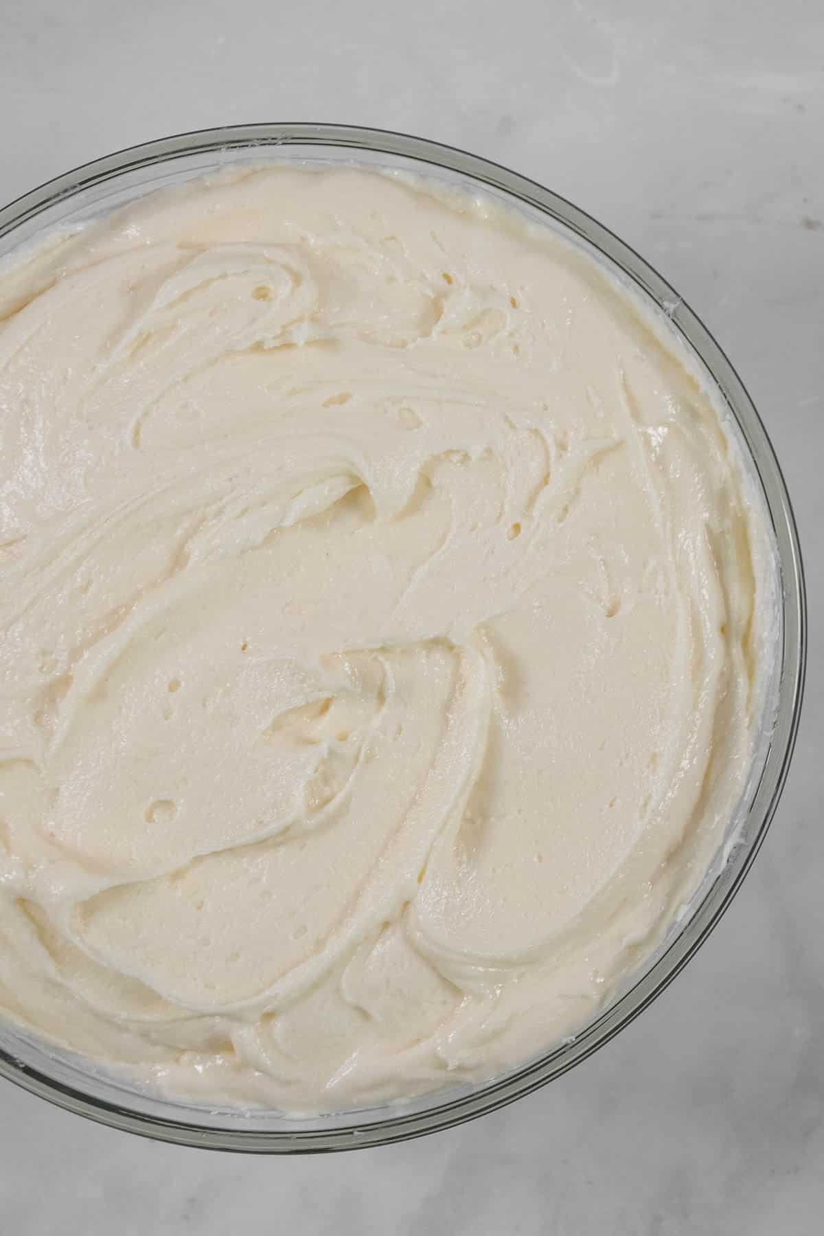 Step 3: Gradually add in the powdered sugar in batches and mix on low speed until completely combined with no lumps. Scrape down the sides of the bowl as you add and blend.
