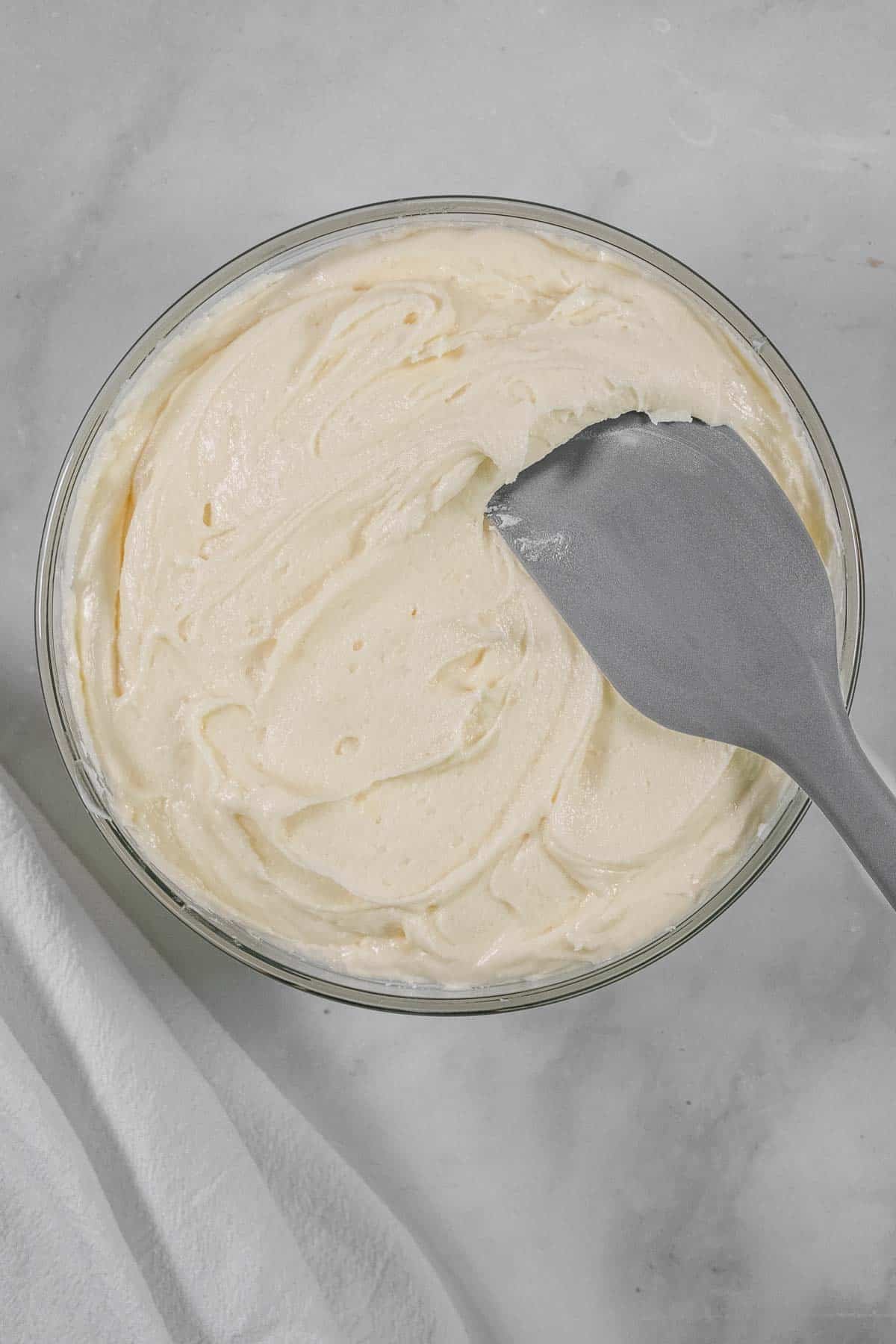 - Block Cream cheese – I use full-fat cream cheese, softened to room temperature for about 30 minutes. I have used ⅓ less fat instead of regular cream cheese with the same results but I don’t recommend whipped cream cheeses.