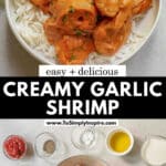 This creamy garlic shrimp is a favorite recipe of ours to make for a busy weeknight dinner. Quickly pan-seared shrimp in the most amazing simple tomato and garlic cream sauce is perfect over pasta or rice.