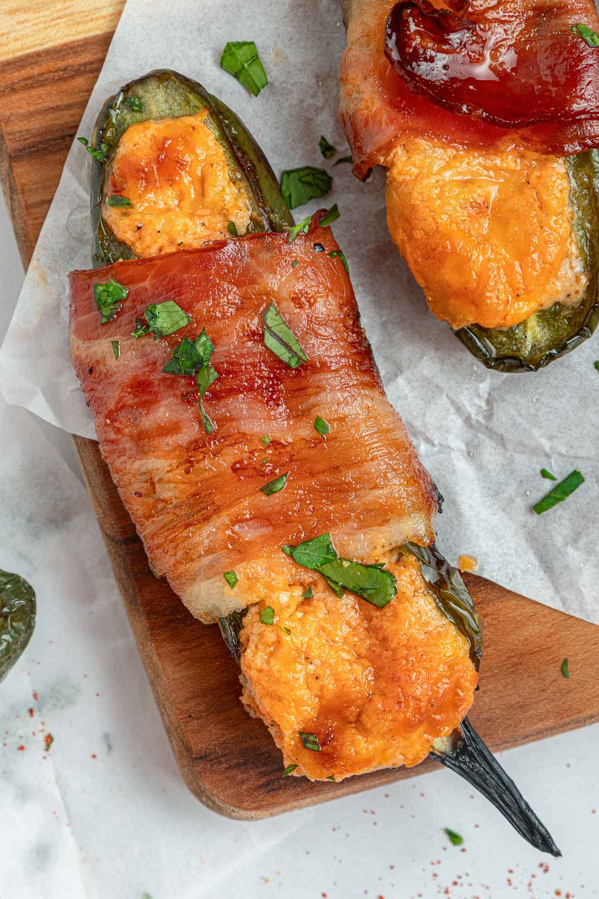 These grilled jalapeno poppers are stuffed with a simple cheese filling of just a few ingredients, wrapped in bacon, and cooked until the peppers are tender and the bacon is crispy.