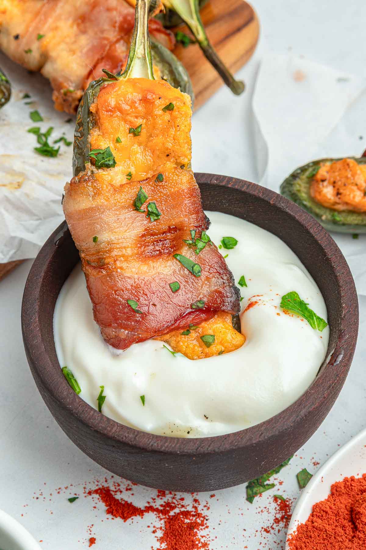 If you’d rather, you can cook the bacon first, chop it and add it to the cheese mixture instead of wrapping each jalapeno. I have made them both ways and they are delicious!