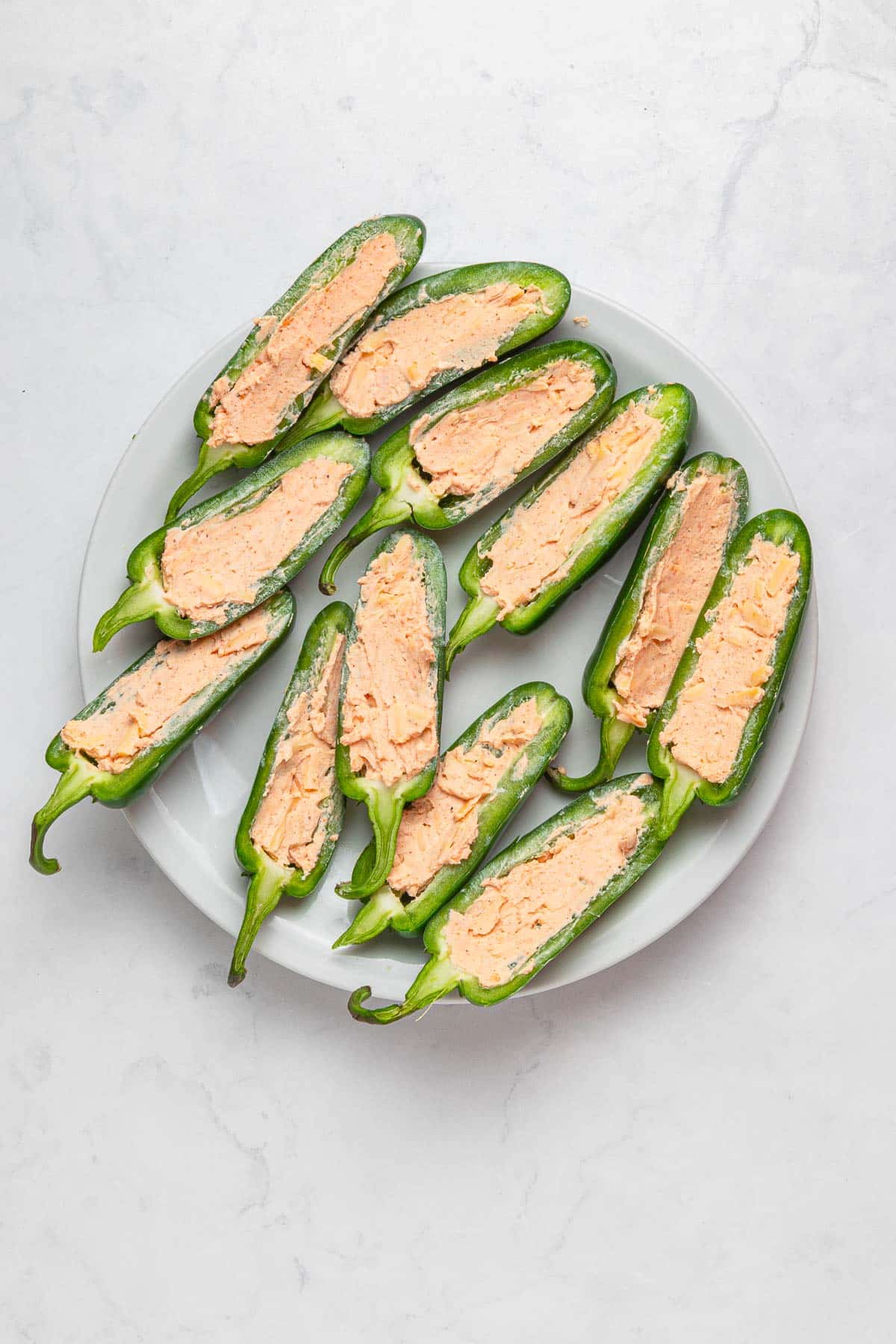 - Spoon the mixture into each jalapeño pepper half.