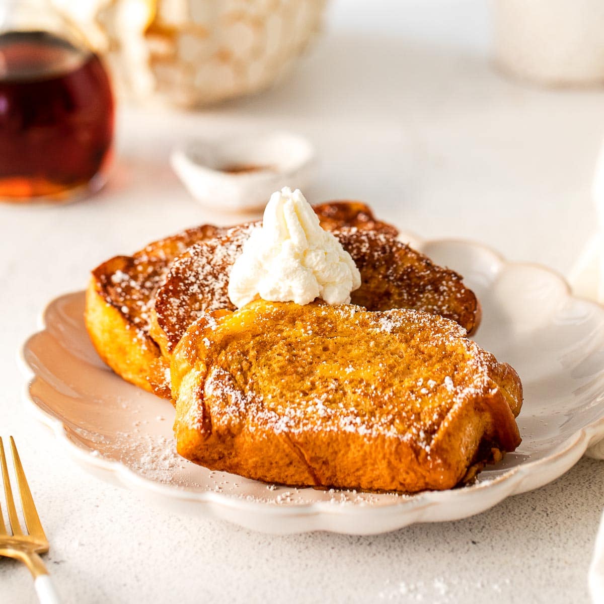 This Pumpkin french toast is so delicious! It’s light, fluffy and full of flavor. Such a cozy all breakfast never gets old!