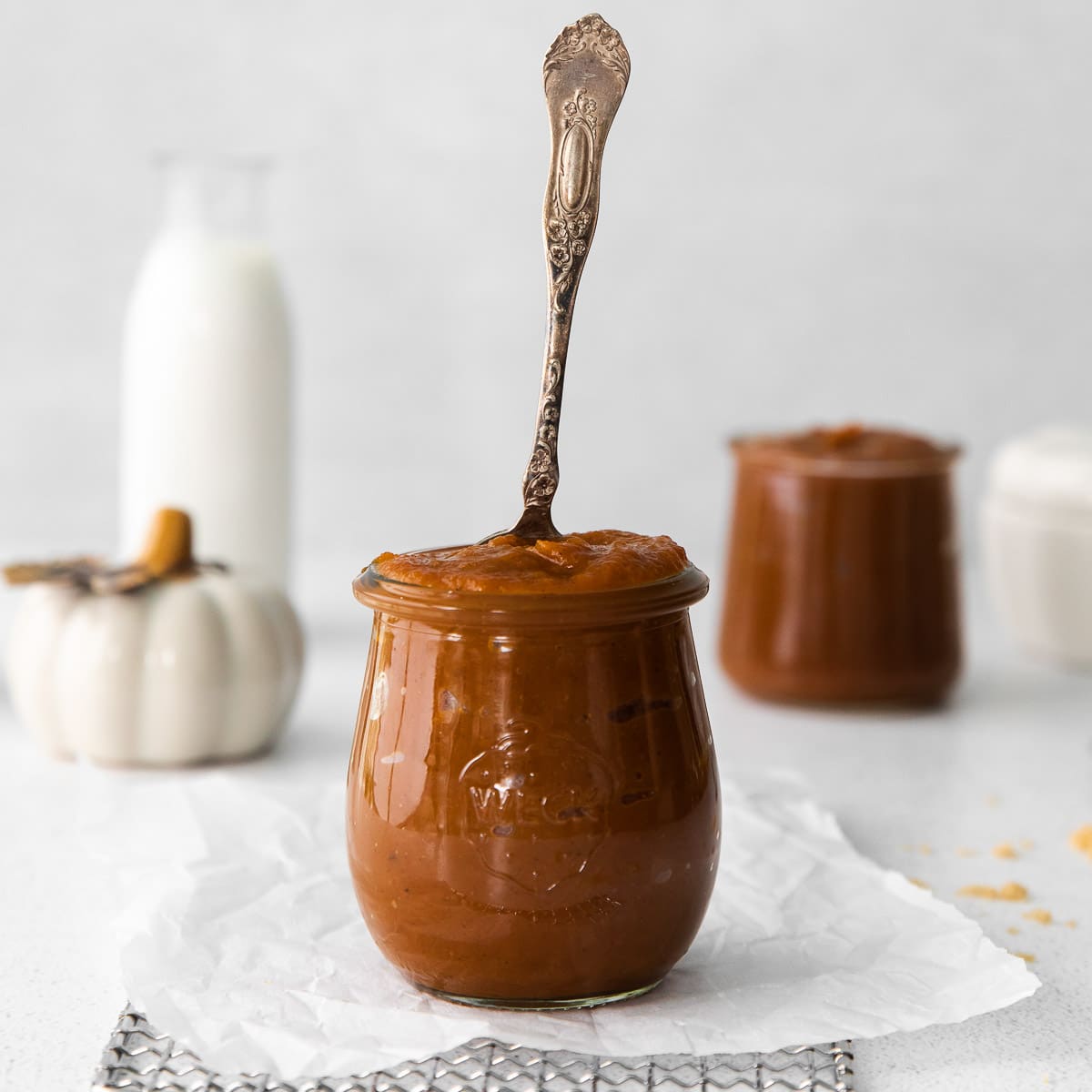 This slow cooker pumpkin butter uses just 4 ingredients and turns into a smooth, cozy spread perfect on toast, pancakes, or warm biscuits!