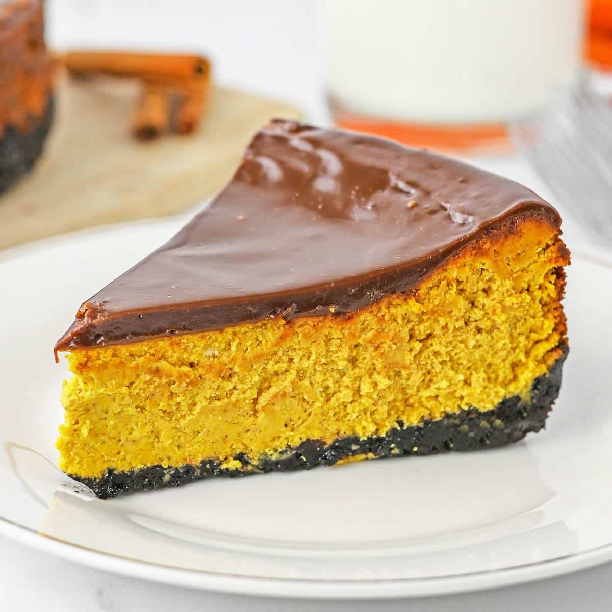 This Chocolate Pumpkin Cheesecake is smooth and creamy with a rich Oreo crust and pumpkin cheesecake.