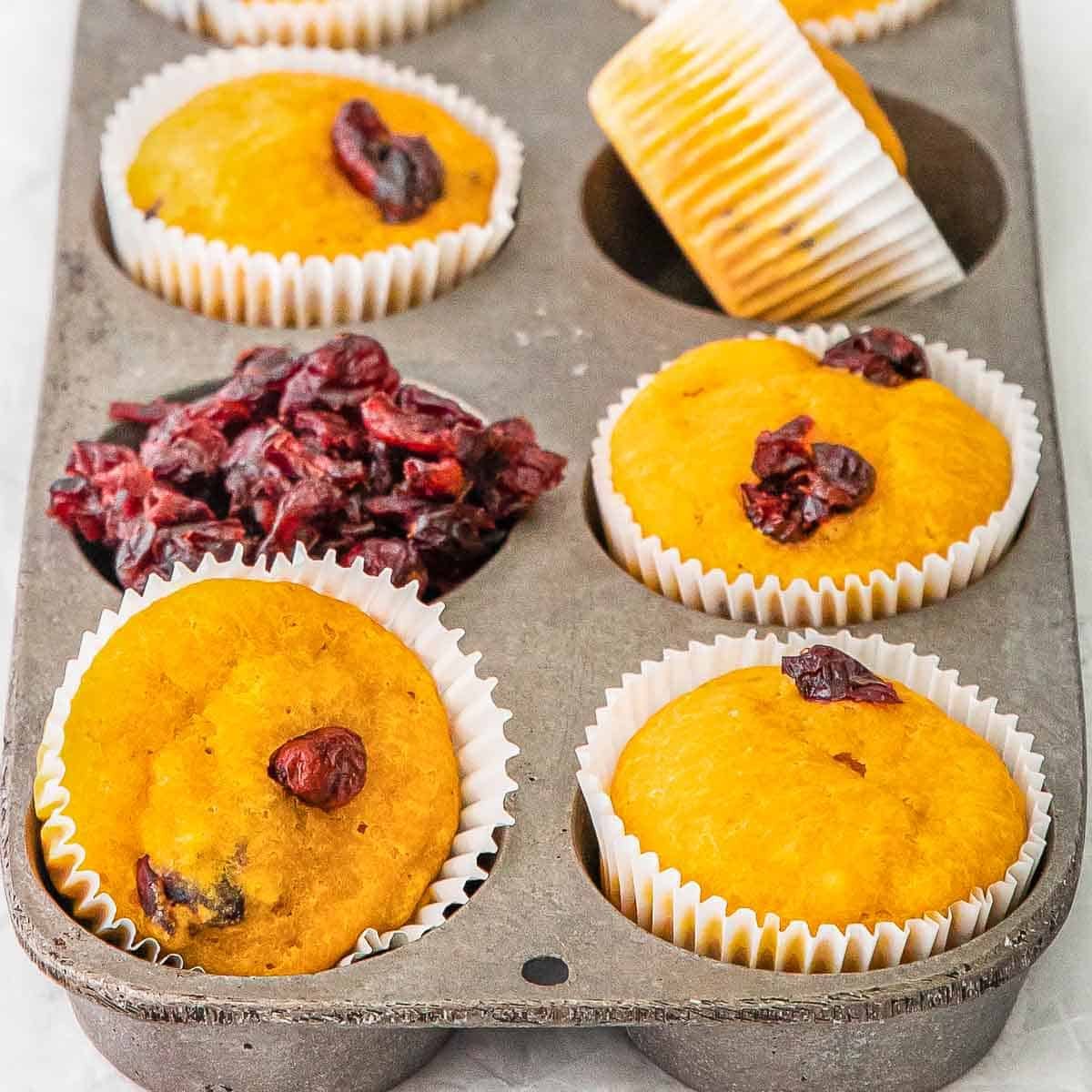 These Cranberry Pumpkin Muffins bring cozy fall pumpkin flavor together with sweet, tangy. Perfect for Thanksgiving dessert or a festive Christmas brunch.