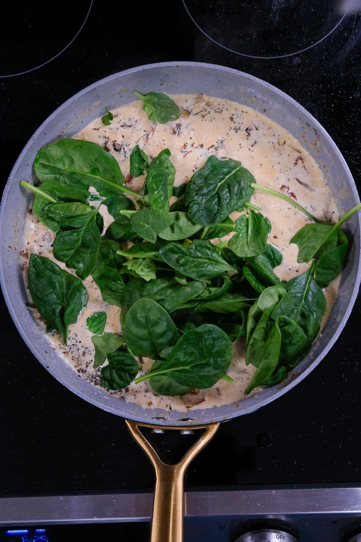 Step 7: Then add in the spinach and cook for a few minutes until it wilted.